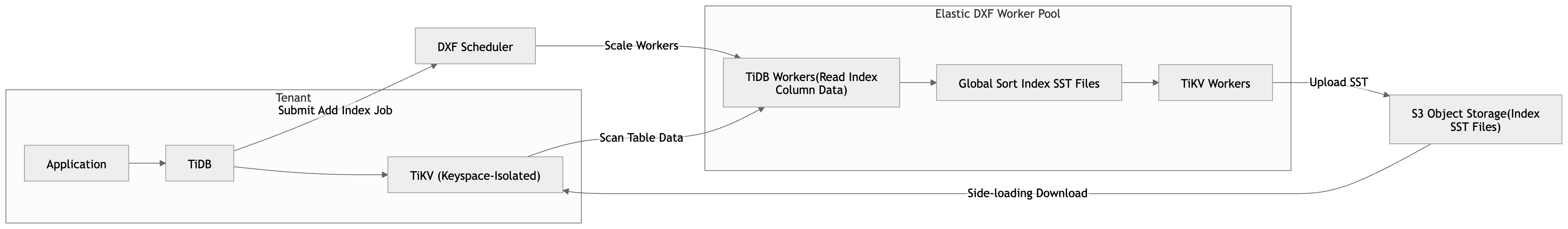 Solution: TiDB X dynamically provisions isolated, elastic worker nodes to handle index builds while decoupling index creation via side-loading: