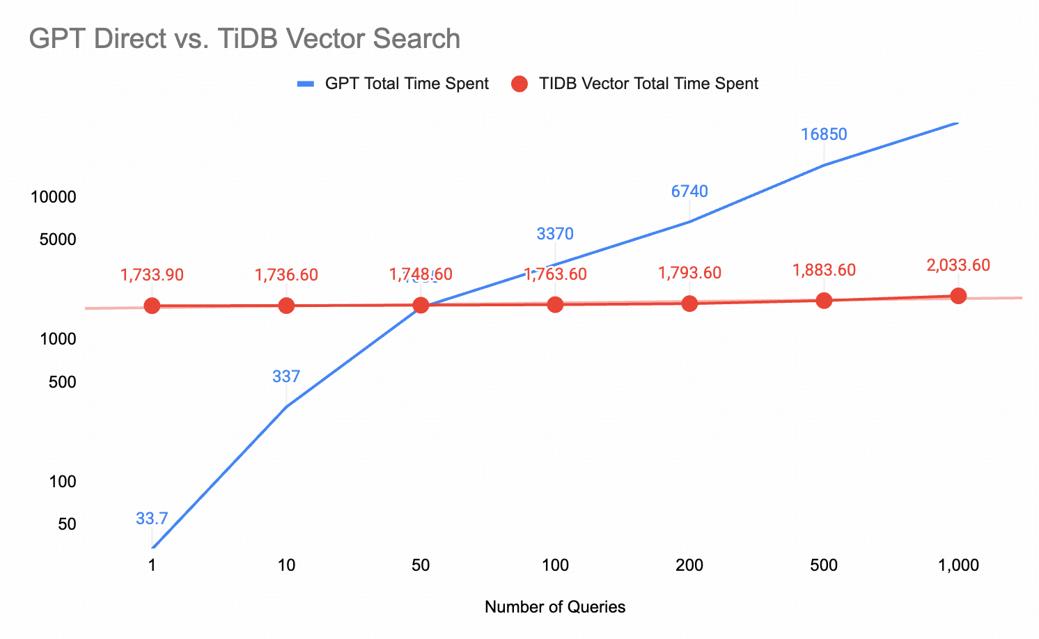 Bottom Line: GPT Direct wins for one-off analyses; TiDB Vector Search dominates for production apps with repeated queries and scale requirements.