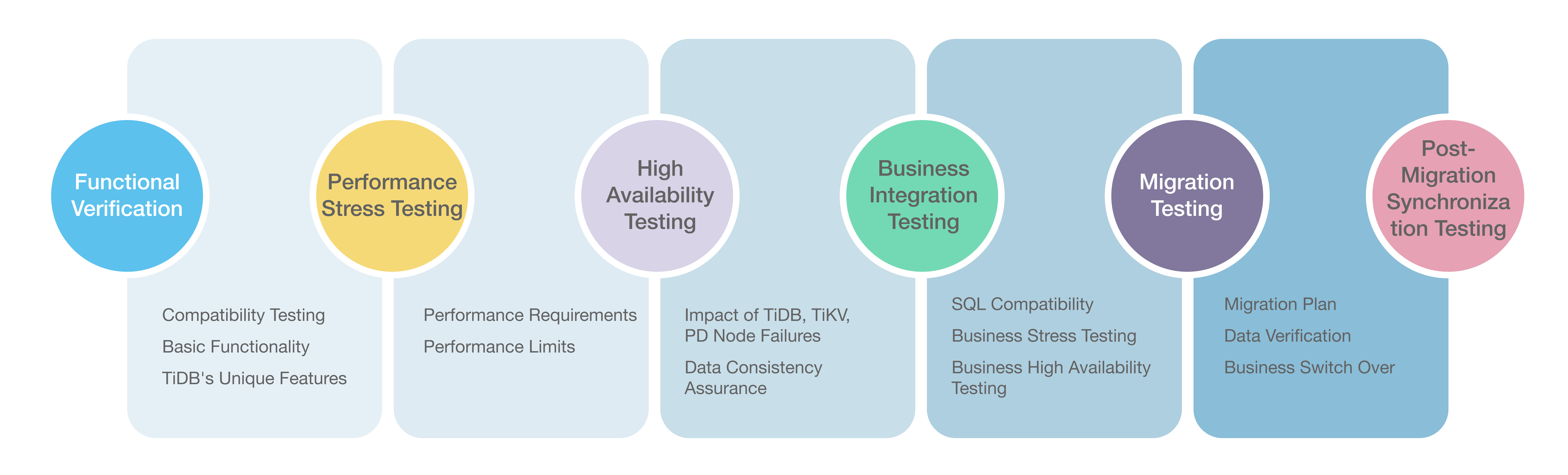 During the selection phase, they conducted several validation tests, including functional verification, performance stress testing, high availability testing, business integration testing, migration testing, and post-migration synchronization testing. These tests helped ensure a smooth migration process from MySQL to TiDB.